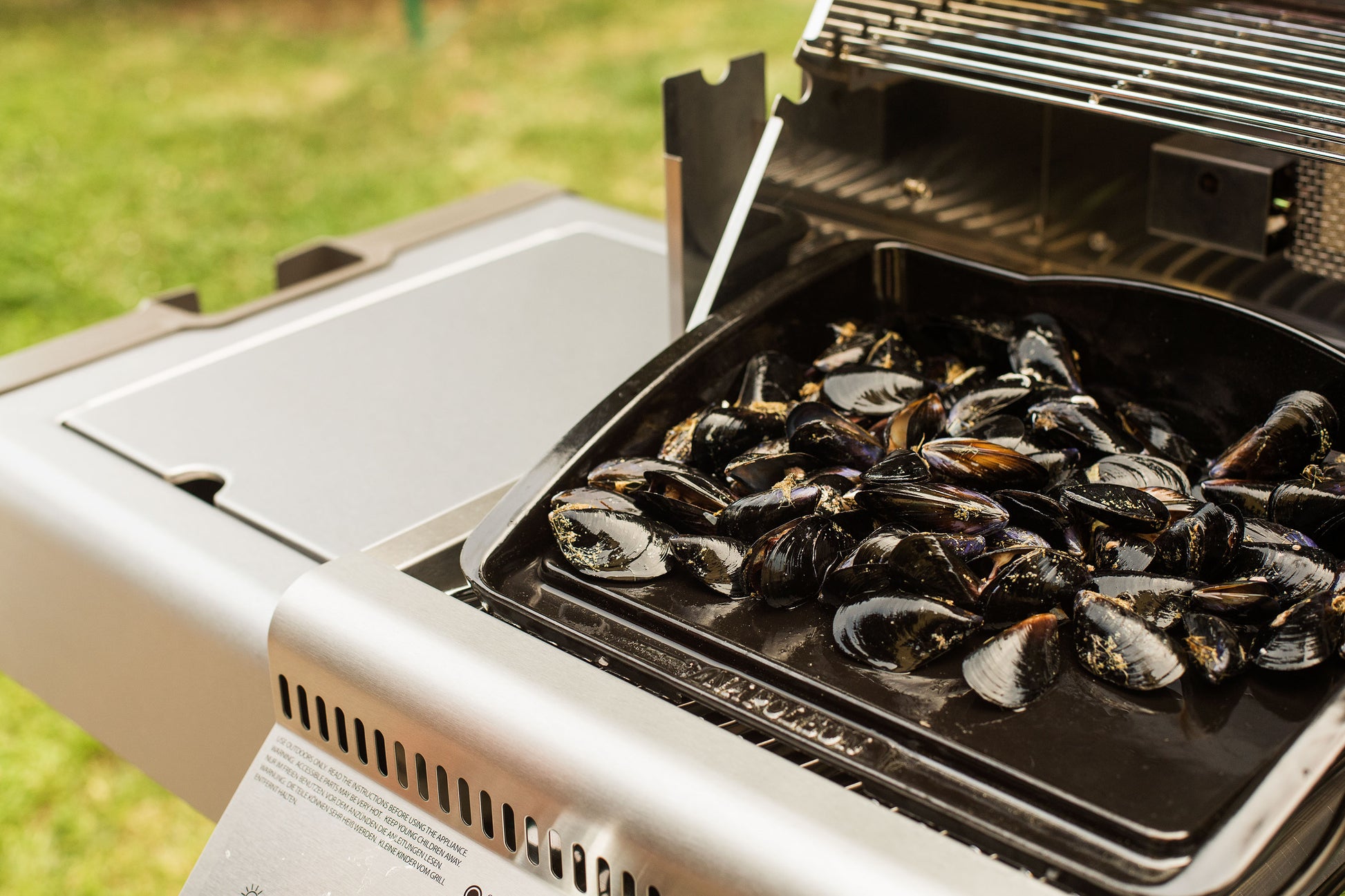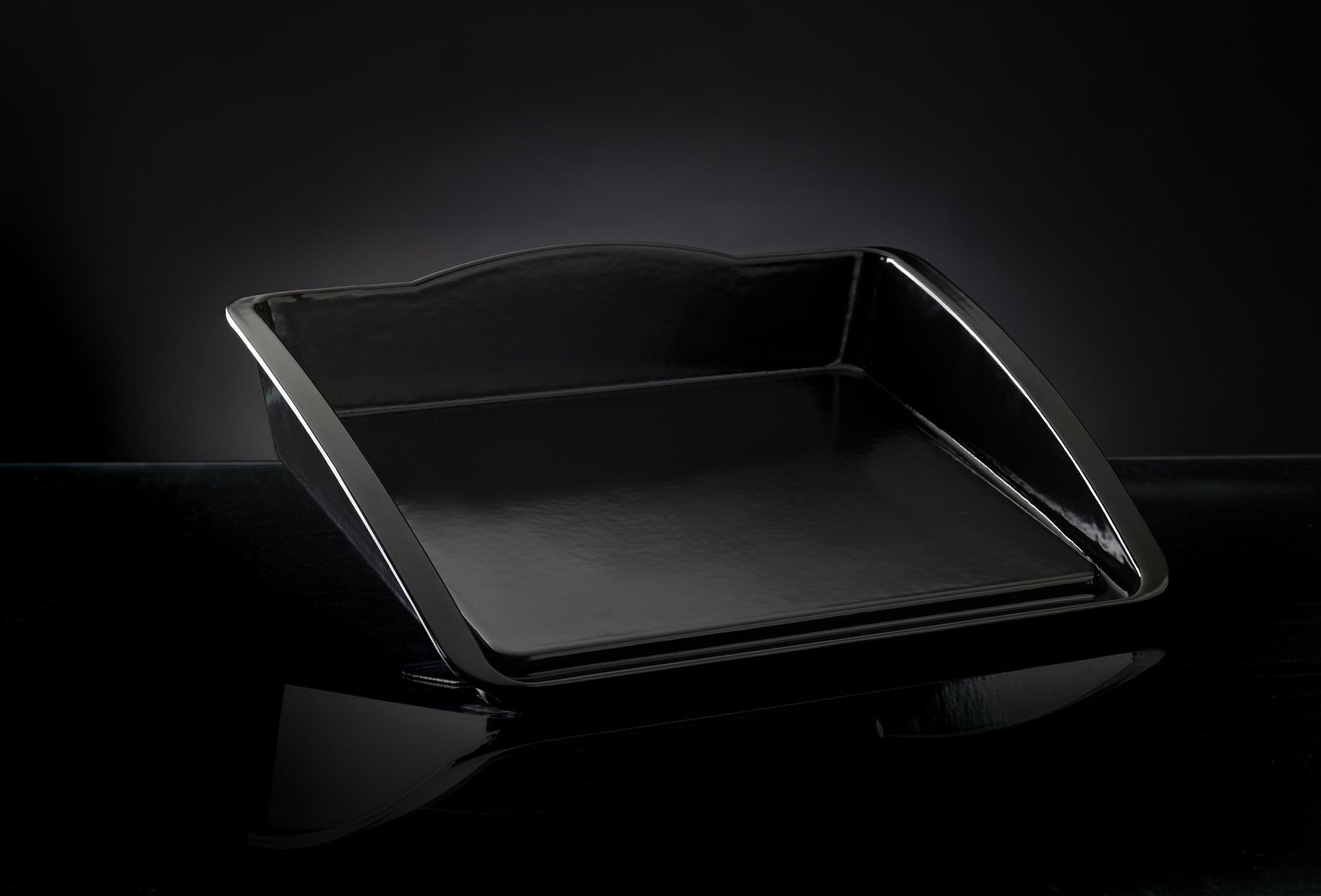 Porzellan-emaillierte Napoleon® Plancha zum Grillen von kleinteiligem Gemüse, Fisch, Meeresfrüchten, Speck oder Burgerpatties. Mit einer Ablaufrinne am Rand und extra hohen Wänden (38 cm x 21 cm x 7,5 cm).